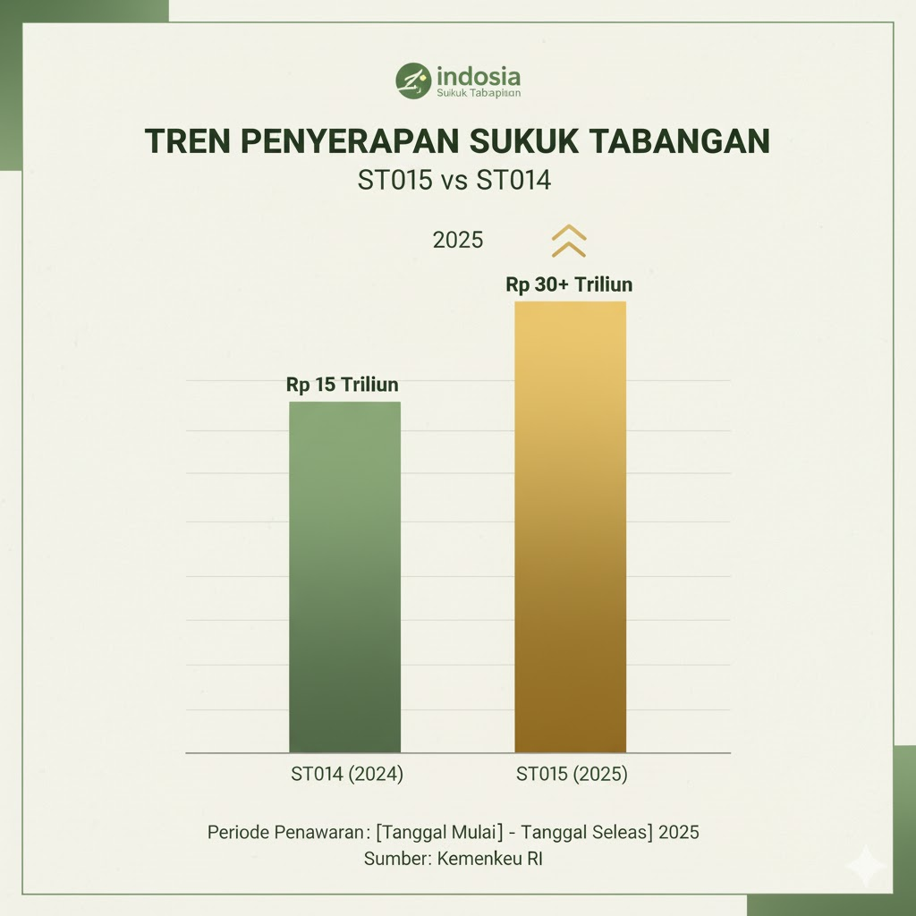 Sejak diluncurkan pada 2018, Sukuk Tabungan menjadi salah satu sumber pembiayaan APBN yang stabil. Berdasarkan data DJPPR Kemenkeu, penjualan ST014 (seri sebelumnya) berhasil mencapai lebih dari Rp 11 triliun. Namun, target untuk ST015 diperkirakan sedikit lebih moderat — berkisar Rp 8–10 triliun, tergantung kondisi likuiditas masyarakat.