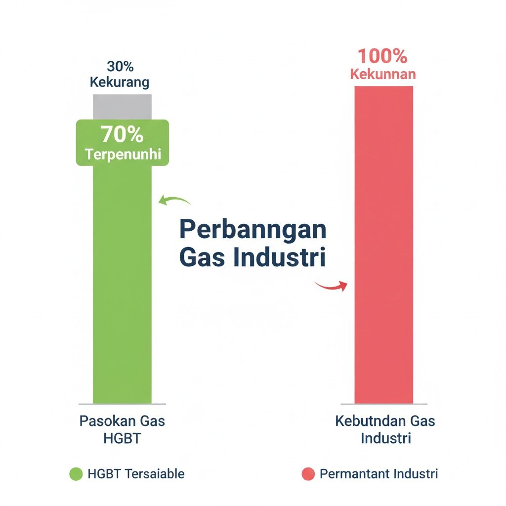 Dari kebutuhan gas industri yang mencapai jutaan MMBTU per bulan, realisasi pasokan HGBT hanya mampu memenuhi sebagian kecil — dalam beberapa kasus bahkan kurang dari 60 persen dari kebutuhan aktual.