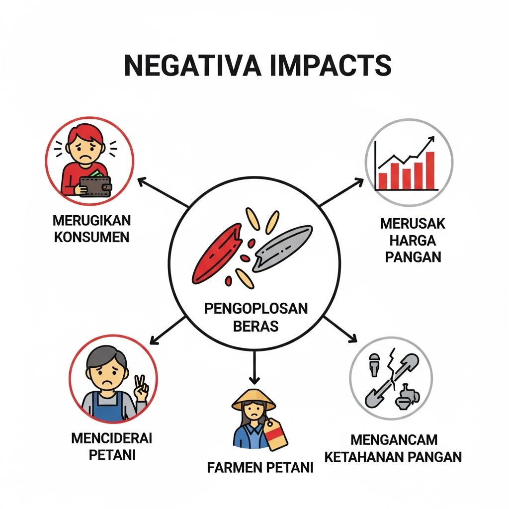 - Mengancam Ketahanan Pangan: Ketersediaan dan kualitas pangan adalah pilar ketahanan nasional. Pengoplosan merusak sistem distribusi pangan. Ini juga menimbulkan keraguan akan jaminan kualitas. Pada akhirnya, ini mengancam stabilitas pangan negara secara keseluruhan. Ini bisa memicu gejolak sosial jika pasokan atau harga beras tidak terkendali.